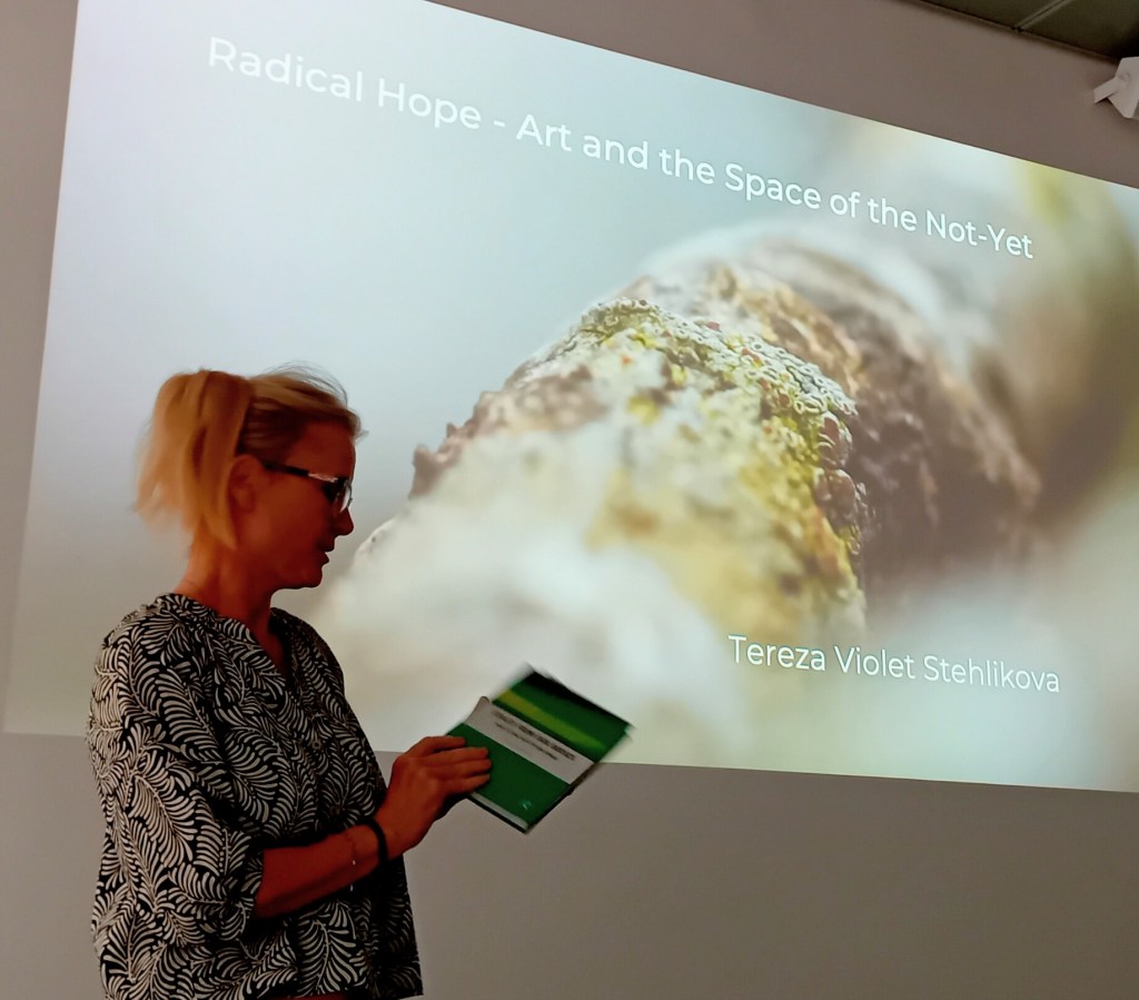 In her presentation, ‘Radical Hope – Art and the Space of the Not-Yet’, Tereza Violet Stehlikova drew on ideas from her book Exiled from Our Bodies: How to Come Back to Our Senses to explore radical hope as something that emerges not through technological optimisation, innovation or the promise of ever-greater control, but through our capacity to remain open to the unresolved, the ambiguous and the not-yet-formed. Reflecting on art’s ability to create liminal spaces in which habitual ways of seeing begin to dissolve, she considers how both art and nature can open up new possibilities for perception, meaning and transformation.