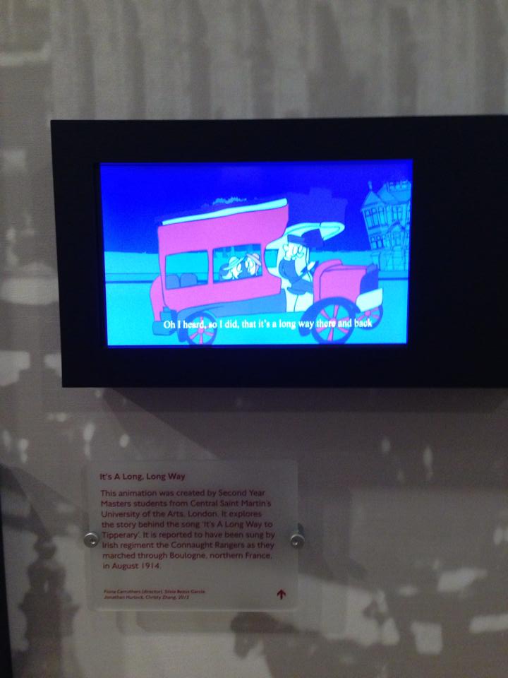 The accomplished animated films combine a mixture of techniques such as hand drawing, stop motion, Cel Action, Maya, Flash and After Effects to visualise elements of the collection that exist in the form of sound recordings only. This includes an account of the origin of the song ‘It’s a Long Way to Tipperary’ and the stories of women’s suffrage during the First World War, such as the struggle of women bus conductors for equal pay. The concepts for the films were selected by museum staff from a series of pitches by the talented students, who worked together in teams of four to complete the films to a strict deadline.